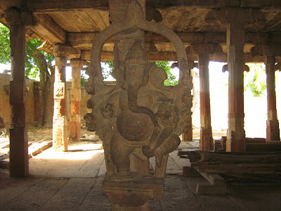 Outside the temple is a mandapam having pillars. After the mandapam are rows of pillars. Maybe there was a long mandapam which is now gone?